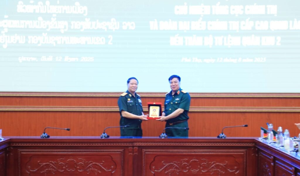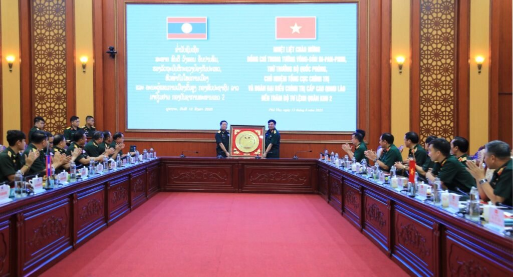 QK2 – Sáng 12/8, Trung tướng Vông-Sỏn In-Pan-Phim, Thứ trưởng Bộ Quốc phòng, Chủ nhiệm Tổng cục Chính trị QĐND Lào cùng đoàn cán bộ cấp cao Quân đội  nhân dân Lào đến thăm và tọa đàm tại Quân khu. Tham gia đoàn công tác có Thượng tướng Lê Quang Minh, Phó Chủ nhiệm Tổng cục Chính trị Quân đội nhân dân Việt Nam.