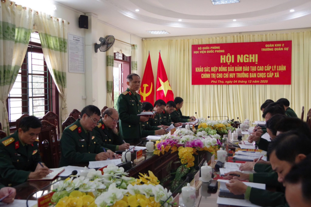 Sáng ngày 4/12/2025, Đoàn công tác của Học viện Quốc phòng và Đoàn công tác Quân khu đã đến làm việc tại Trường Quân sự Quân khu 2 để khảo sát, hiệp đồng bảo đảm đào tạo cao cấp lý luận chính trị cho chỉ huy trưởng Ban CHQS cấp xã. Đây là sự kiện có ý nghĩa quan trọng, mang tầm chiến lược đối với sự nghiệp xây dựng, phát triển đất nước và Quân đội trong giai đoạn mới.