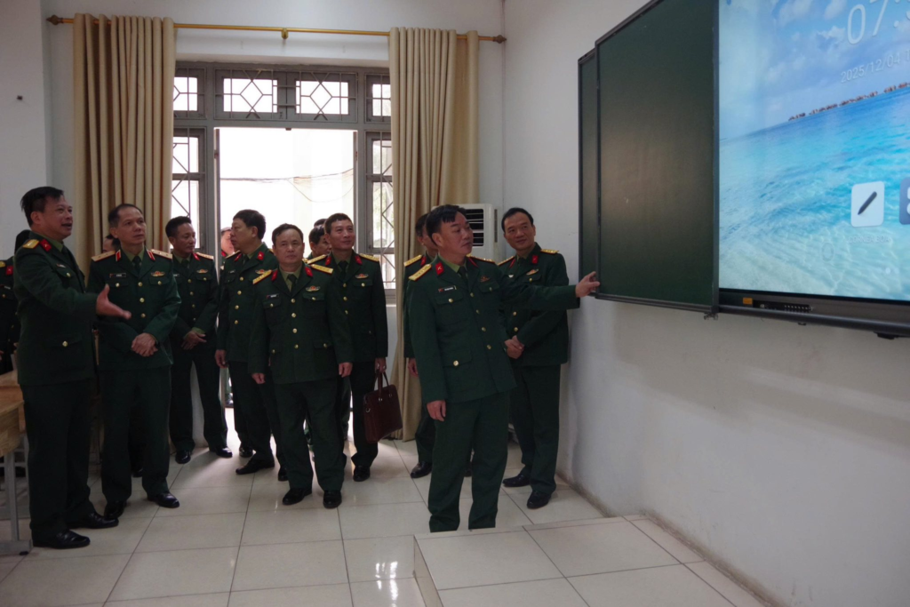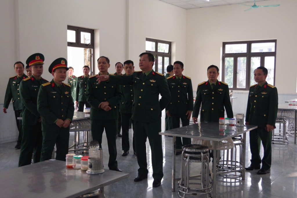 Đoàn công tác khảo sát hệ thống giảng đường, phòng học, hội trường, khu nhà ăn ở tại Trường Quân sự Quân khu 2.