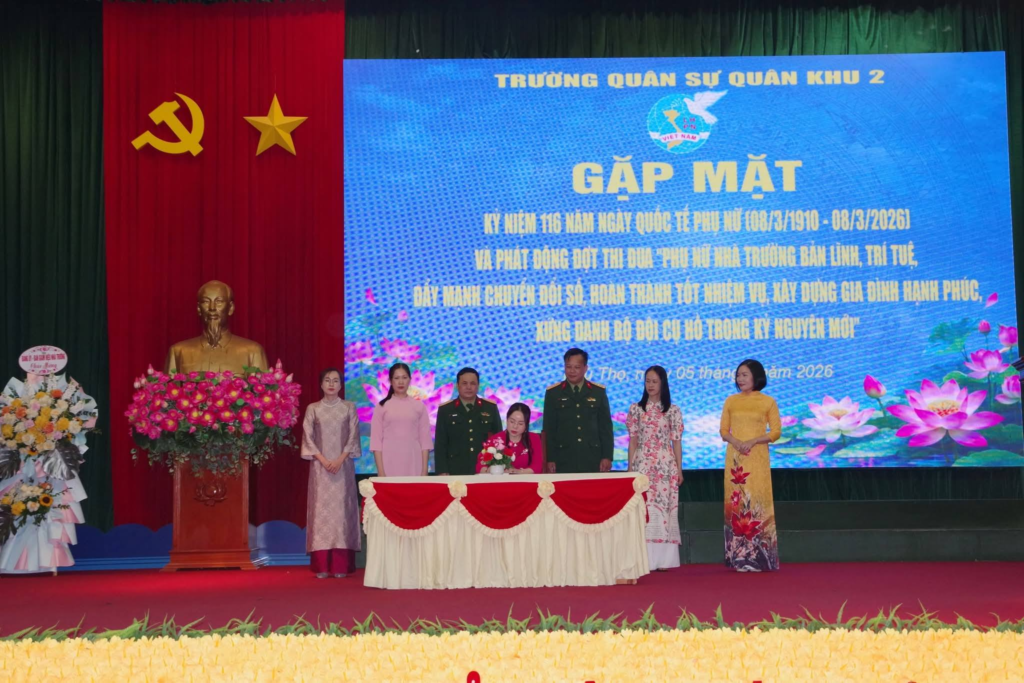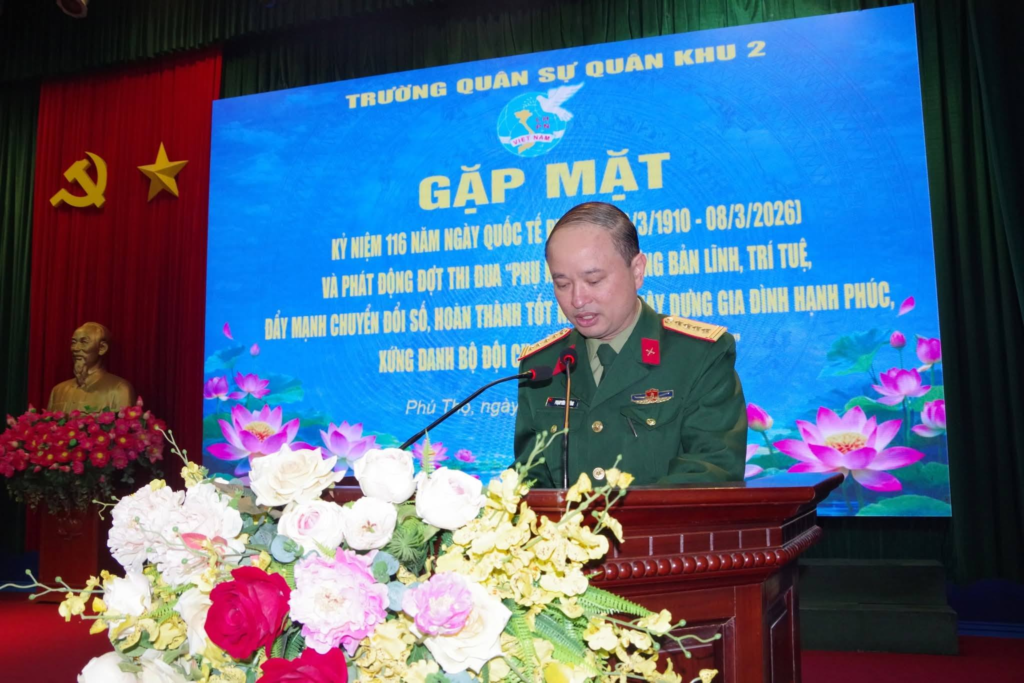Trường Quân sự Quân khu 2 tổ chức gặp mặt kỷ niệm 116 năm Ngày Quốc tế Phụ nữ (08/3/1910 – 08/3/2026) và phát động đợt thi đua “Phụ nữ Nhà trường bản lĩnh, trí tuệ, đẩy mạnh chuyển đổi số, hoàn thành tốt nhiệm vụ, xây dựng gia đình hạnh phúc, xứng danh Bộ đội Cụ Hồ trong kỷ nguyên mới”.