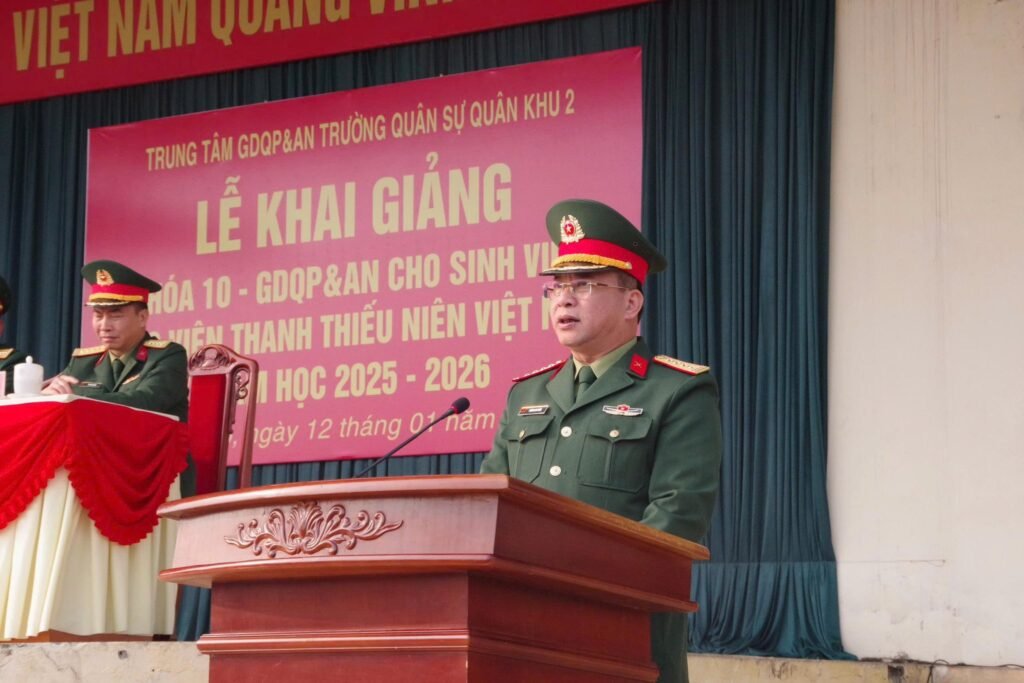 Chiều 12/1, Trường Quân sự Quân khu tổ chức Khai giảng khóa 10 – Giáo dục Quốc phòng & An ninh (QP&AN) dành cho 1.657 sinh viên Học viện Thanh thiếu niên Việt Nam năm học 2025 – 2026. Tới dự và chủ trì có đồng chí Đại tá Dương Anh Tuấn, Giám đốc Trung tâm Giáo dục QP&AN – Hiệu trưởng Nhà trường; Về phía Học Viện Thanh thiếu niên Việt Nam có Tiến sĩ Hoàng Minh Tuấn – Phó Giám đốc Học viện.
